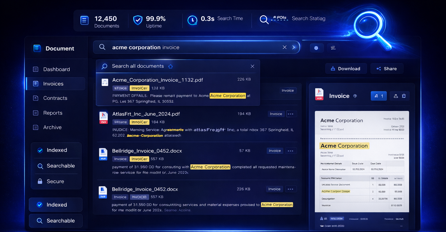 From ERP and financial management to intelligent document archiving — we build fully integrated systems that run your entire business operation.